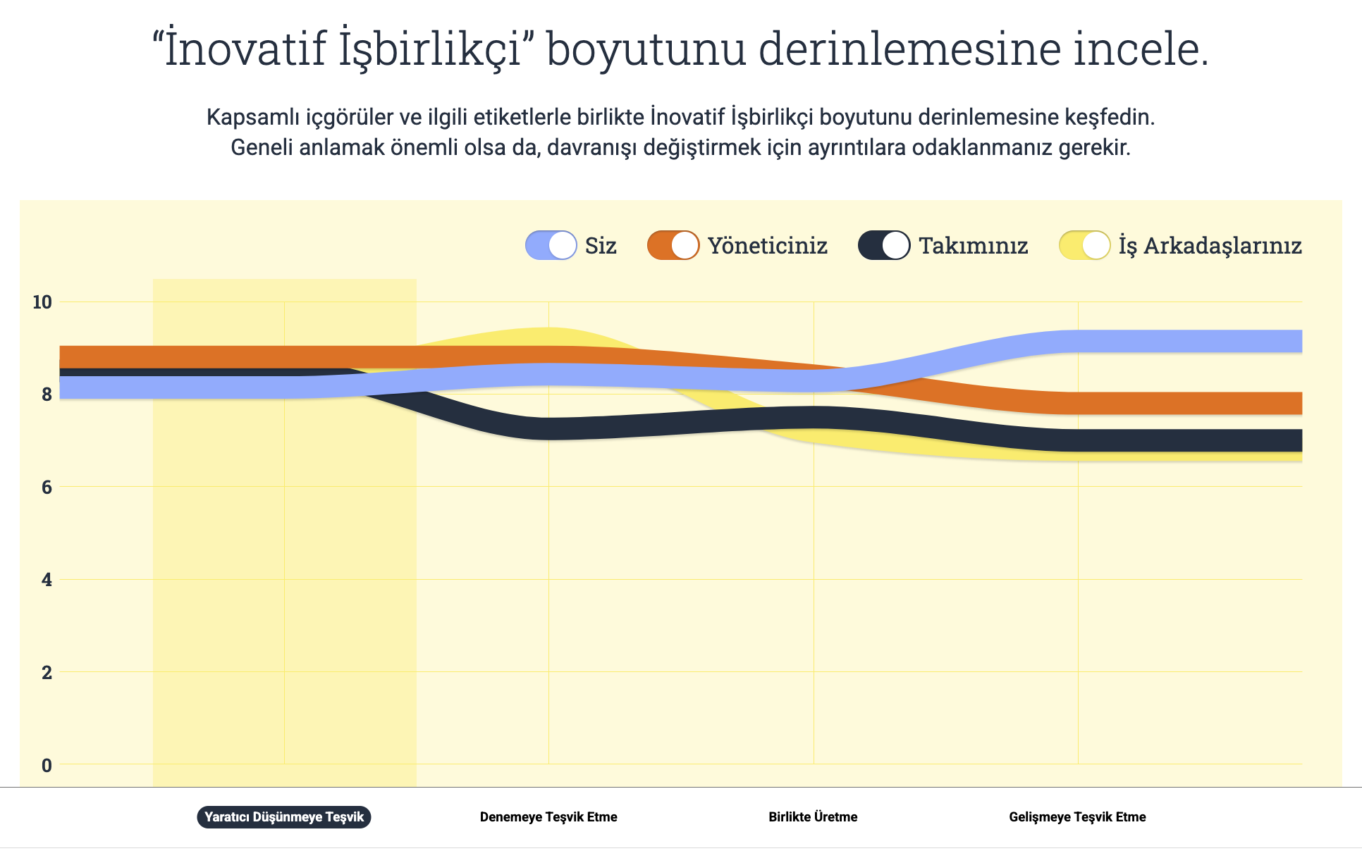 6 Boyut Raporunu temel alarak, liderlerin gelişim alanları ve güçlü yönlerine odaklanan mikro öğrenmeler sunuyoruz ve yöneticilerin kendi hızlarında öğrenmelerine yardımcı oluyoruz.